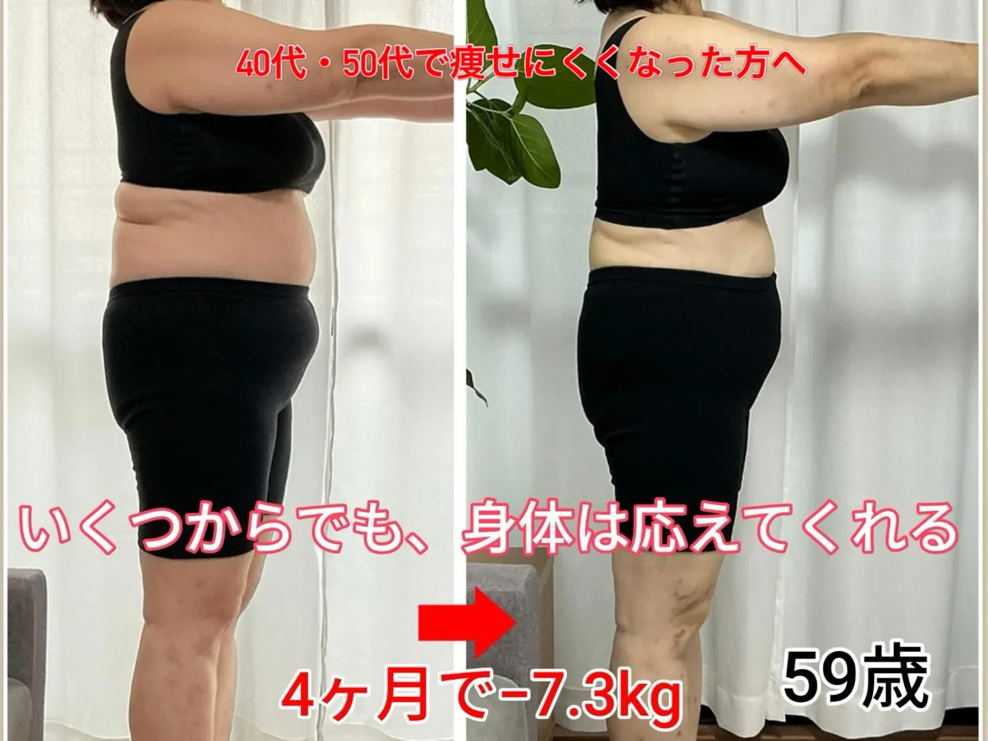 59歳 2026/04/25 59歳 4ヶ月で−7.3kg 「もう年齢的に無理かも…」 そう思っていた方です でも実際は 体はちゃんと応えてくれます ポイントは 👉頑張ることではなく“整えること” ✔ 食欲が落ち着く ✔ 間食が減る ✔ 自然に食べ過ぎなくなる だから無理なく続く 「私でもできますか?」という方へ 👉まずは体質チェックから (残り3名)